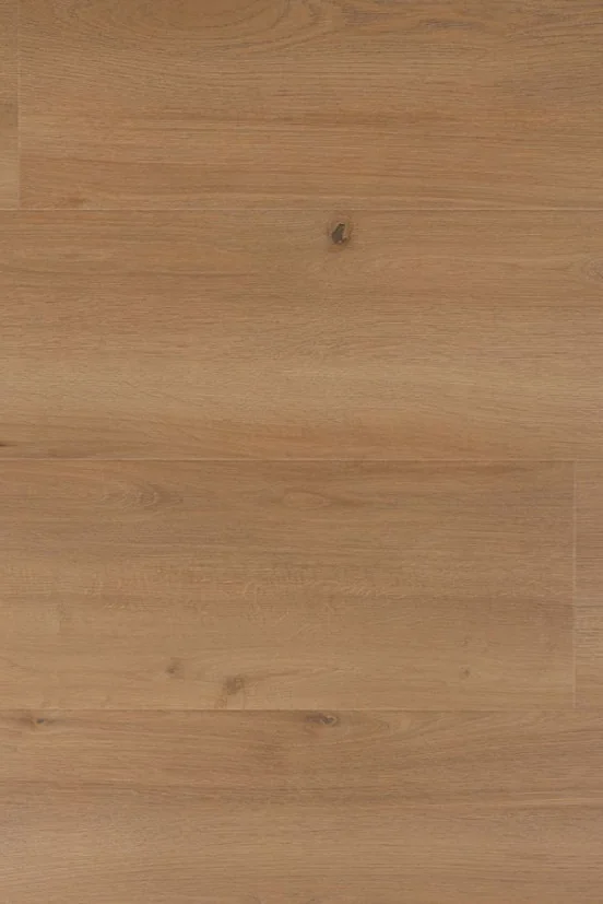 De Douwes Dekker Mosterd is een laminaatvloer met brede planken in een warme bruintint, verrijkt met donkerdere nerven voor extra diepte en karakter. Deze vloer straalt warmte en natuurlijkheid uit en past perfect in een interieur waar gezelligheid en een stoere uitstraling samenkomen. Het brede plankformaat versterkt het rustige, ruimtelijke effect in de ruimte.