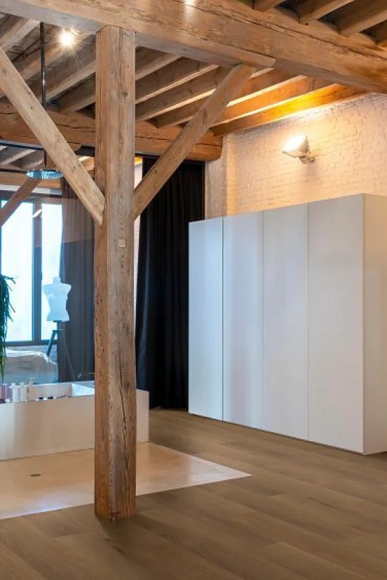 Dankzij de geïntegreerde kurkonderlaag is de vloer comfortabel, geluidsdempend en eenvoudig te leggen. Bovendien is hij 100% waterbestendig, wat hem geschikt maakt voor elke ruimte in huis – van woonkamer tot badkamer.