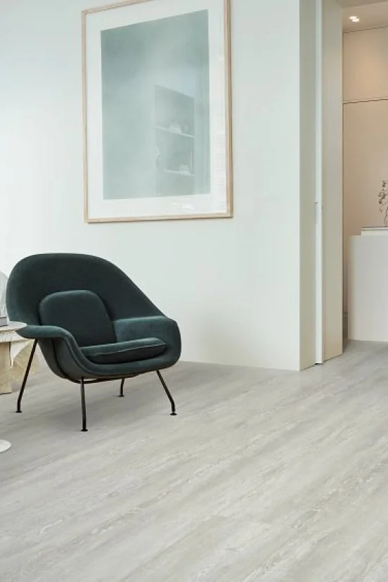 De CoreTec Unity Oak 57 uit de The Essentials 1800+ Series is een elegante PVC-vloer in een koele grijstint met subtiele witte nerf. Deze combinatie geeft de vloer een frisse, moderne uitstraling en laat ruimtes optisch groter en lichter lijken. De natuurlijke houtnerf zorgt voor diepte en karakter, waardoor de vloer nauwelijks te onderscheiden is van echt hout.