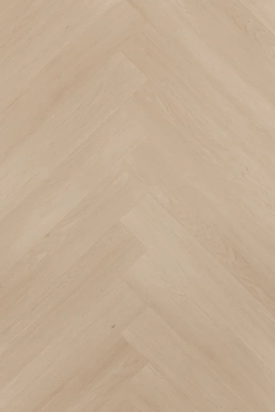 De Floer Walvisgraat Click PVC vloer Zwaardvis Zand (FLR-3918) combineert een luxe walvisgraatpatroon met een zachte, lichte zandkleur. De natuurlijke houtstructuur en matte afwerking zorgen voor een warme en stijlvolle uitstraling, terwijl het extra grote walvisgraatformaat een ruimtelijk en exclusief effect geeft aan elke ruimte.